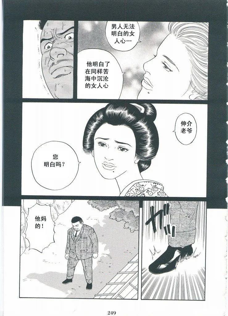 《银の华》除了细腻的堕落书写以外,亦有对于配角的出彩塑造,比如金华楼的佣人常,虽然是施虐的帮凶,但是会对暴力有所迟疑,也会展现出一些人情味。他和另一位佣人的感情亦是一条副线,因为另一位佣人需要他所以他在最后无法收留银次郎,只能望着银次郎离去而落泪,他对银次郎的喜欢里或许包含着同情。而男主角银次郎的心上人玉菊也有着不错的描写,因为银次郎能够真正的体会“在苦海中翻腾的女人的苦楚”而彻底喜欢上银次郎,最后以砍下未婚夫的头作为反抗,迎来了毁灭的结局,在男同志向成人漫画中,亦有着对女性苦难的描写,或许这也是田龟源五郎的一个优点。